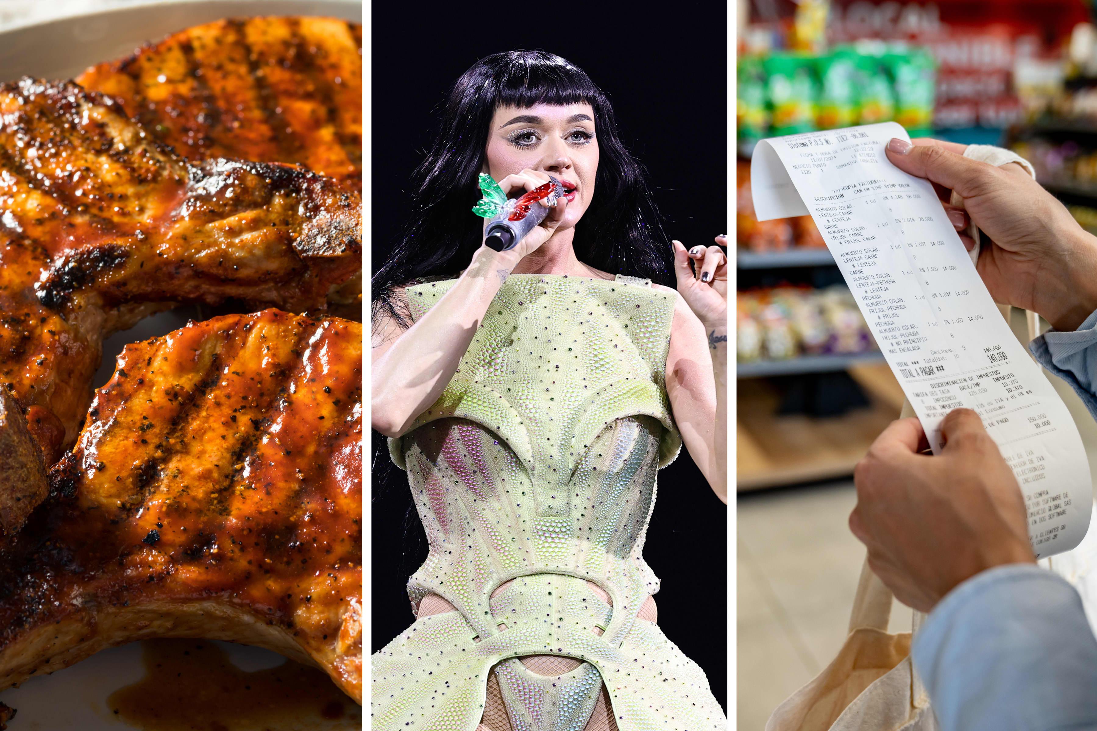 Homemade barbecue pork chops. Katy Perry performs onstage during the Katy Perry The Lifetimes Tour 2025. A woman checks her receipt while exiting a store.