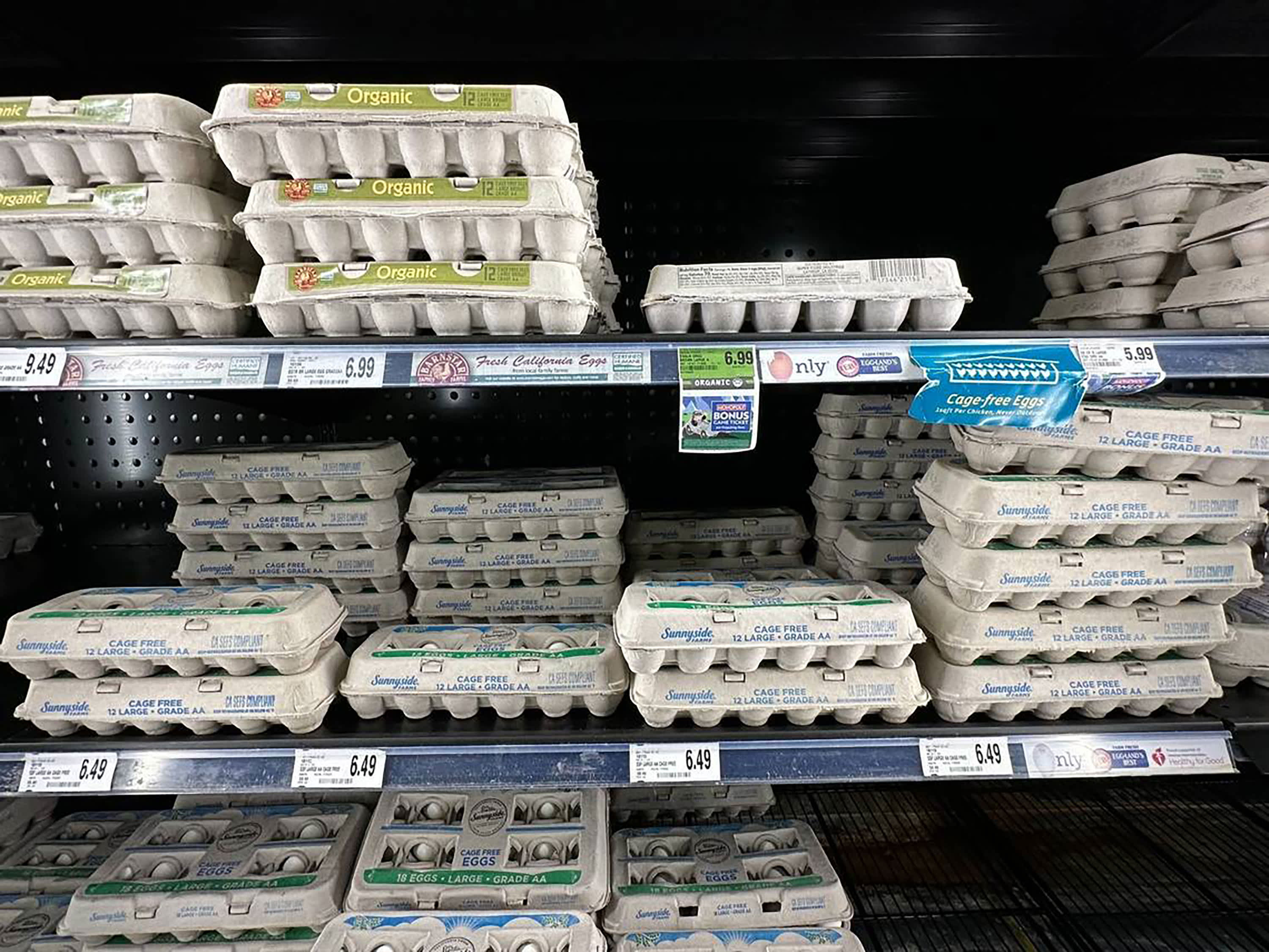 A carton of large white eggs at Save Mart in Fresno, Callifornia, costs $6.49 for one dozen on Monday, Aug. 19, 2024.