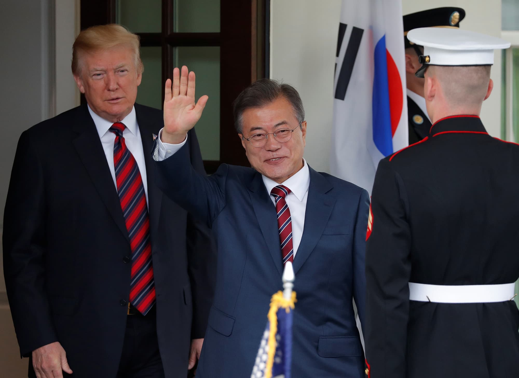 President Donald Trump welcomes South Korea’s President Moon Jae-In at the White House in Washington, U.S., May 22, 2018.