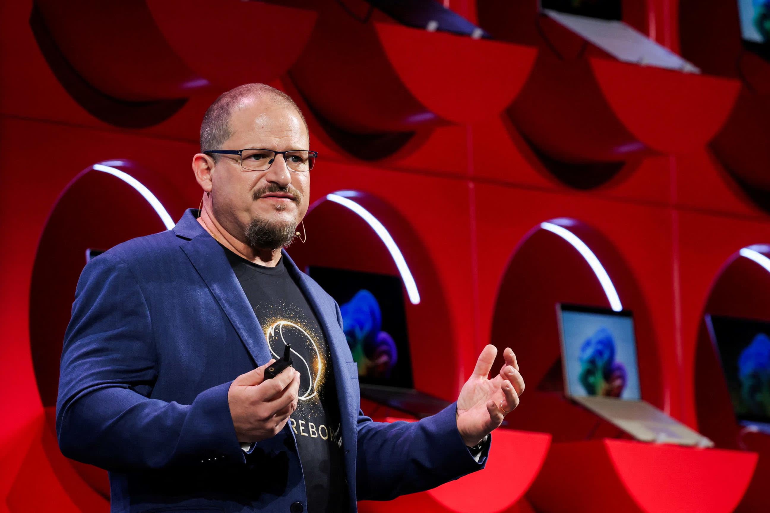Qualcomm CEO Cristiano Amon speaks at the Computex forum in Taipei, Taiwan, June 3, 2024.