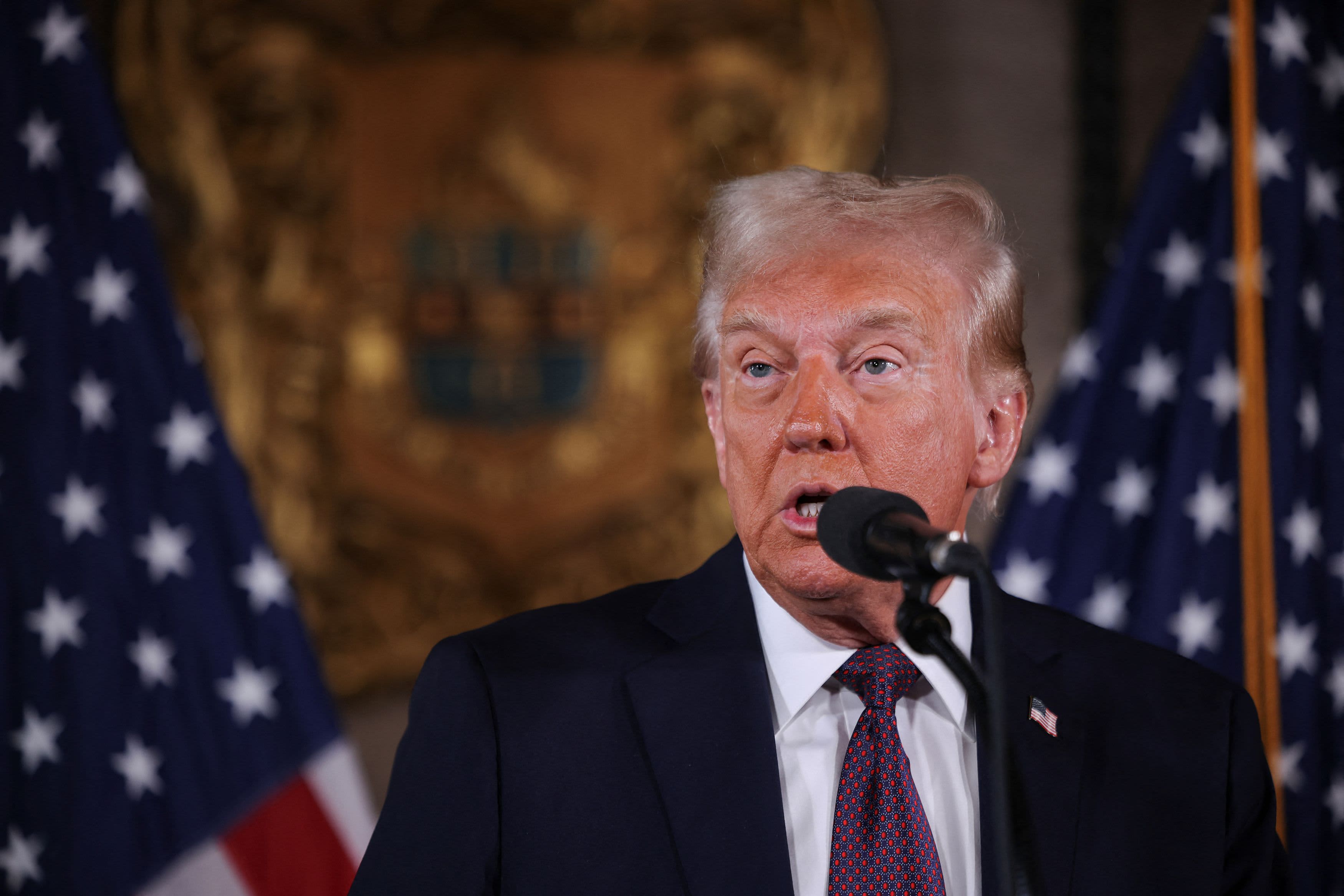 U.S. President-elect Donald Trump makes remarks at Mar-a-Lago in Palm Beach, Florida, U.S. Jan. 7, 2025.