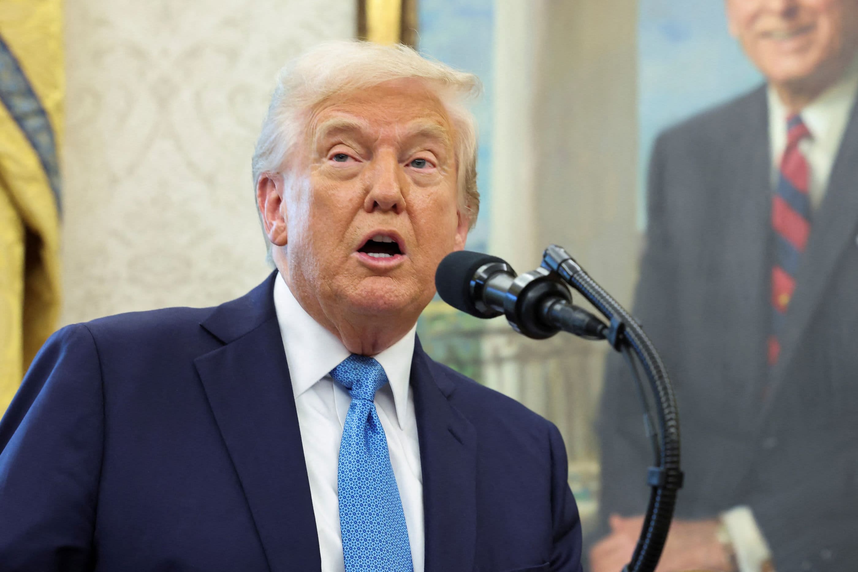 U.S. President Donald Trump speaks at the White House in Washington, D.C., U.S., April 22, 2025.